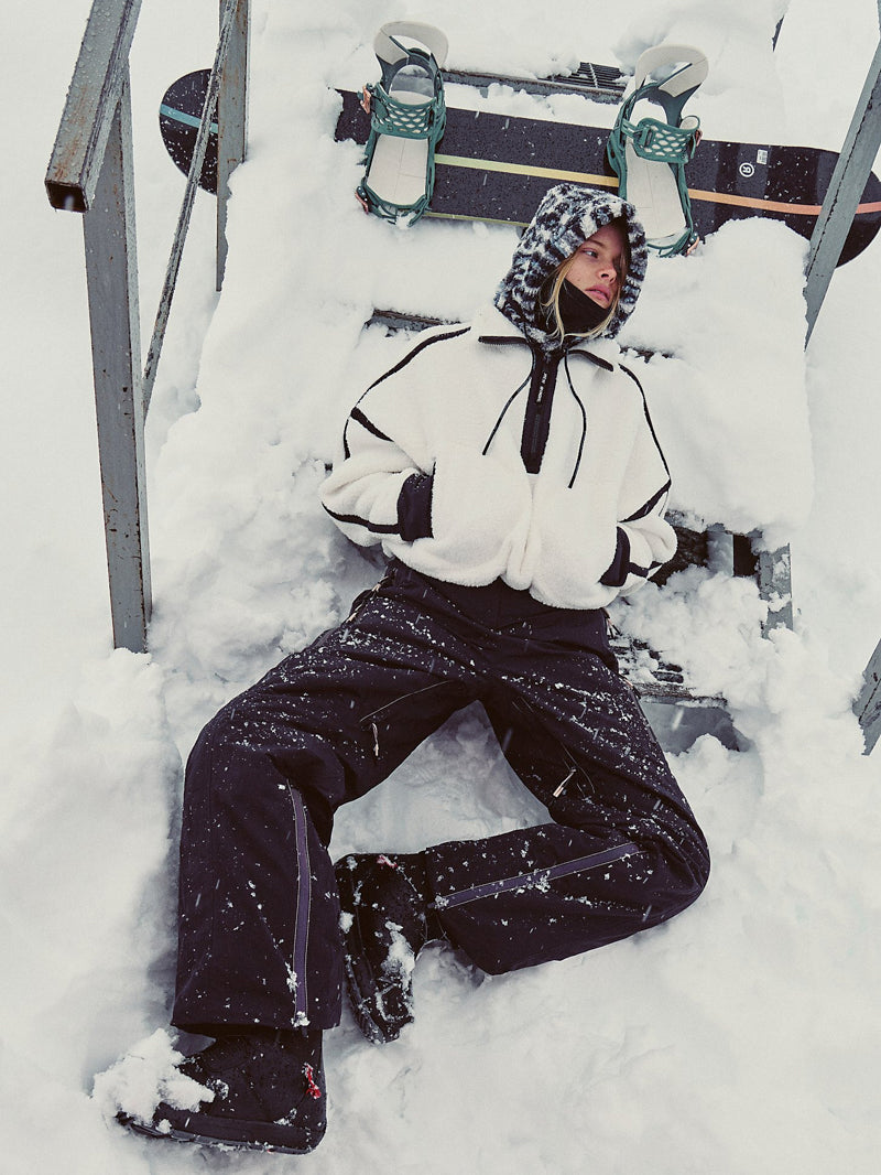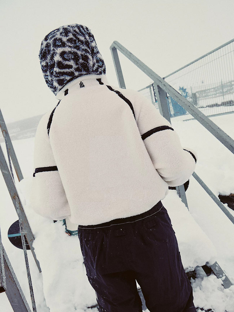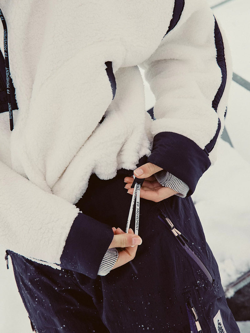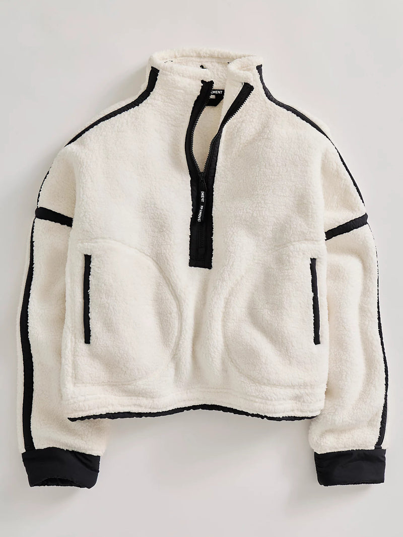 Snuggle up in style with this ultra-soft white fleece pullover jacket — designed with bold black contrast seams, a cozy high neckline, and an adjustable hem for that just-right fit. The boxy, relaxed silhouette makes it your new go-to.