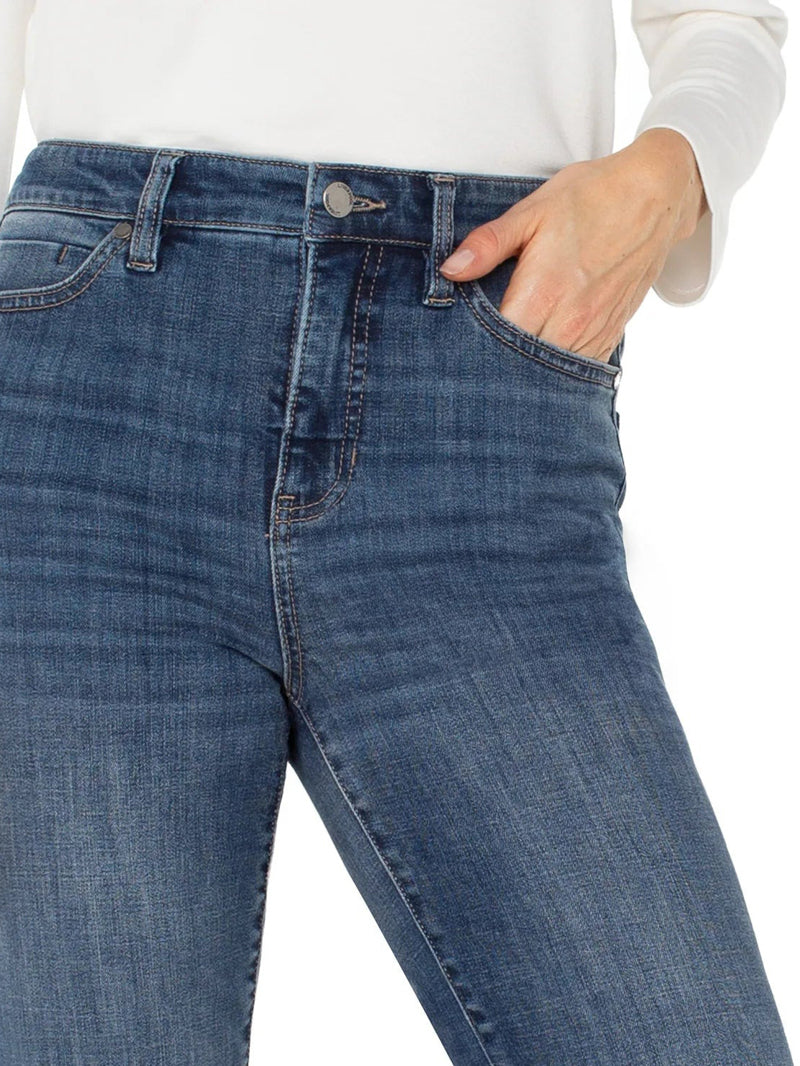 Meet your new go-to flare. This medium wash denim delivers that leg-lengthening magic with a modern edge. Finished with a soft frayed hem and the perfect hint of stretch, it’s made to flatter, flex, and keep up with every move.