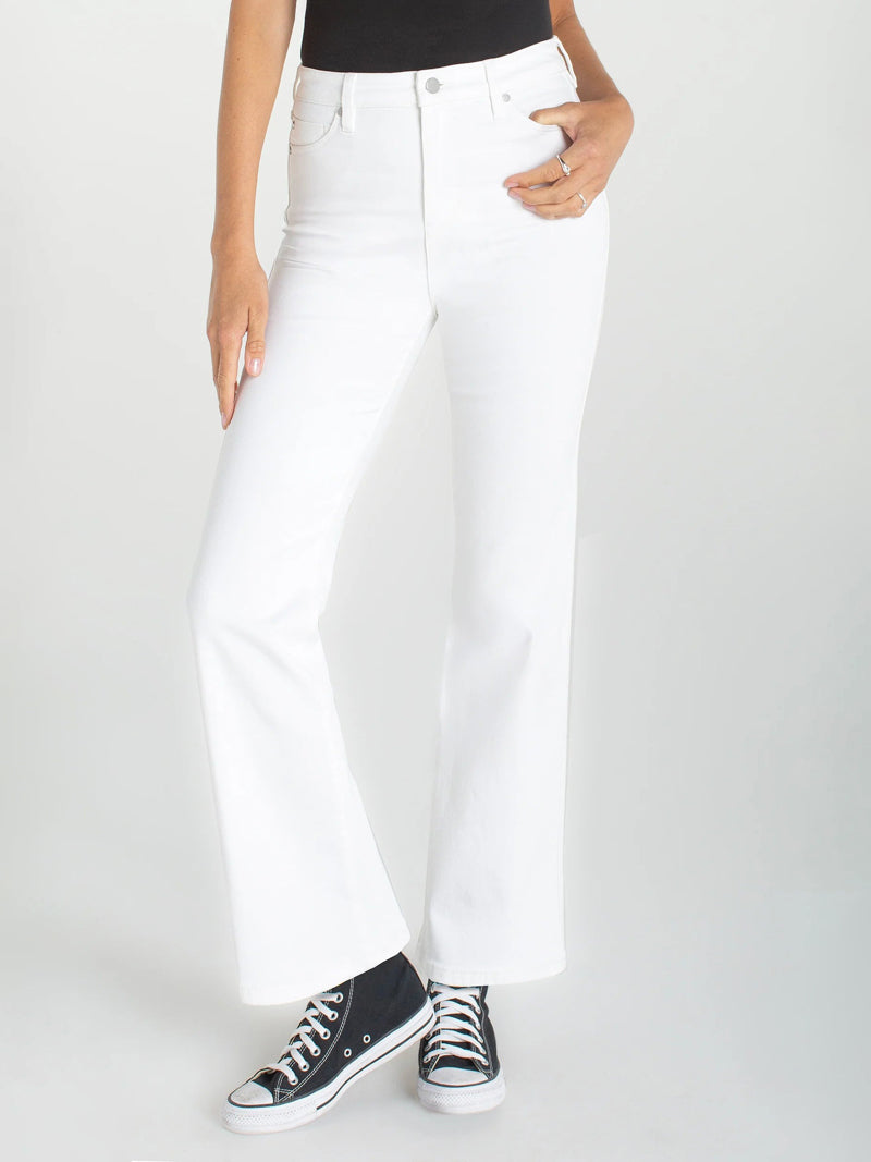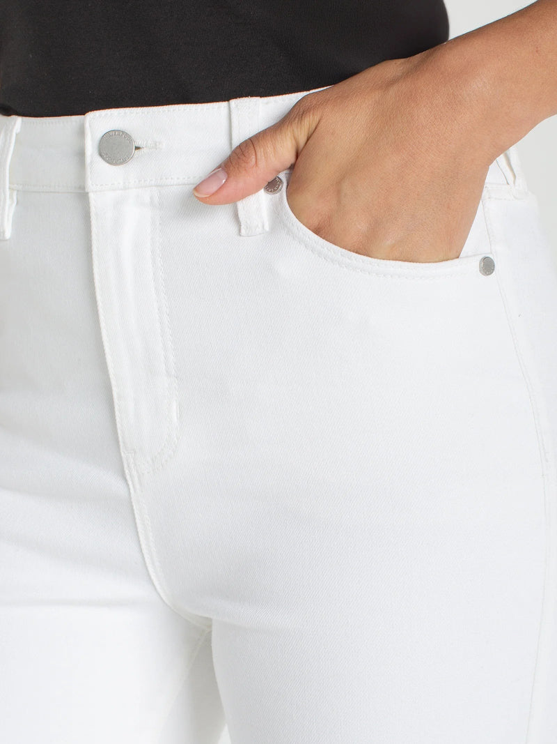 A sleek update to a forever flattering silhouette, these Lucy denim pants in bright white deliver a smooth refined look with soft stretch that holds and moves beautifully. Clean lines and a modern fit make these jeans an effortless choice for day or night.