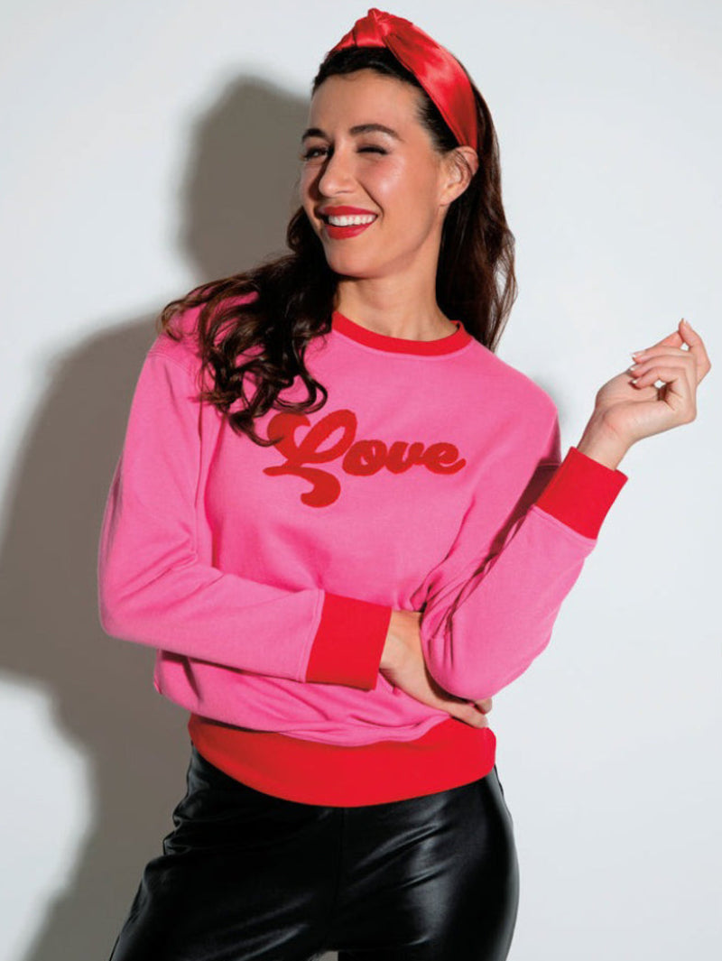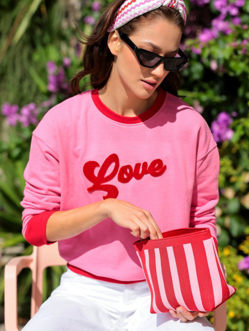 Creatures of comfort, rejoice! Whether you’re on an exciting date or lounging at home, you will appreciate this snug and soft pink Love sweatshirt. With its crewneck, long soft sleeves, and contrasting red details, you'll be comfortable all day long.