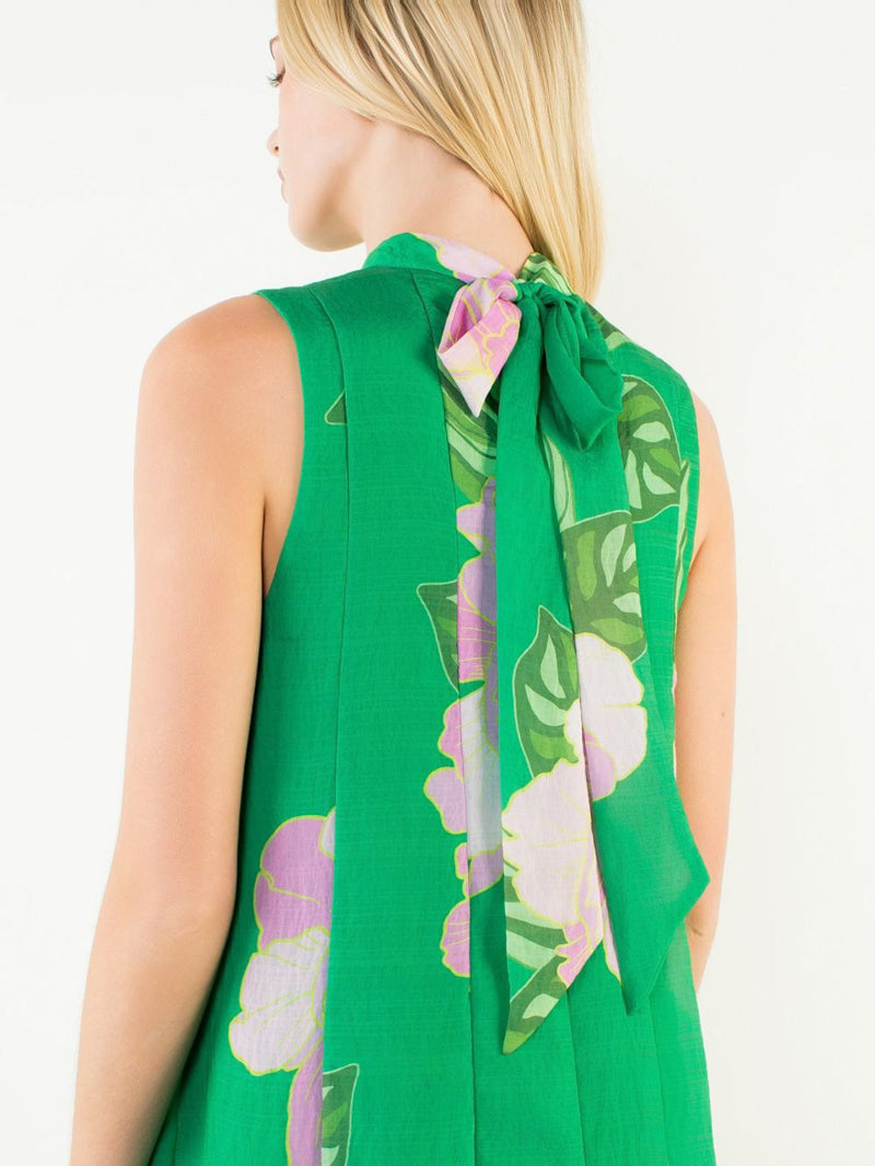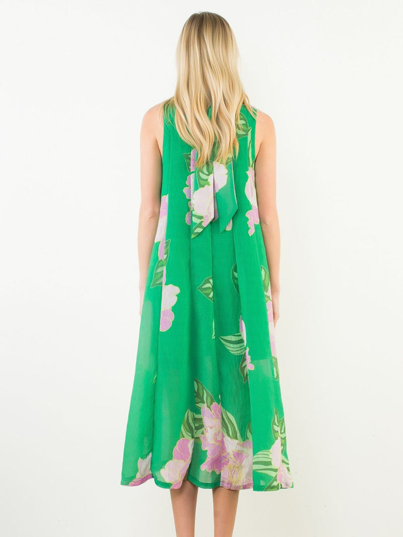 Fresh and effortlessly charming, this green floral midi dress is the perfect sunny-day piece. Designed in a relaxed shift silhouette with a classic round neckline, it features delicate exposed seams for a modern touch. The sleeveless design keeps it light and breezy.