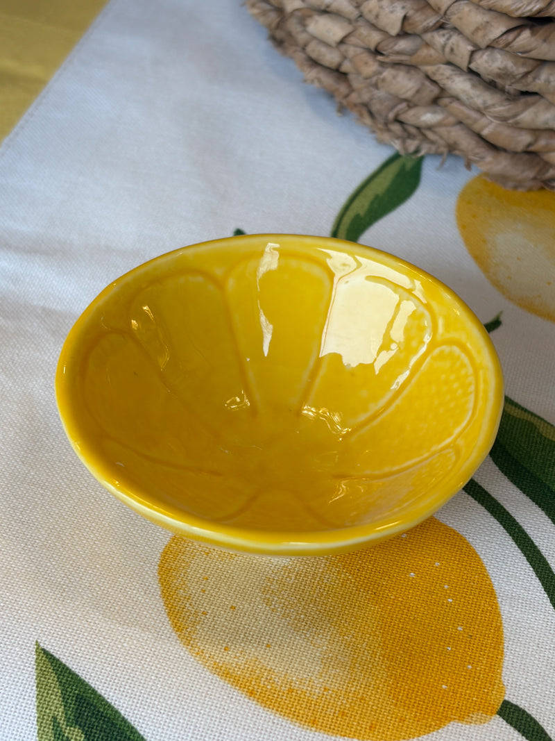 This tiny yellow ceramic lemon bowl is bursting with charm, with its bright citrus hue and sweet, sculpted details. Perfect for holding a pinch of salt, a favorite ring, or a little treat, it adds a happy pop of color wherever it lands.