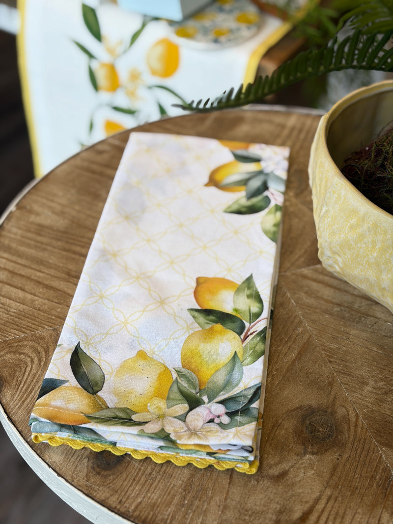 This charming dish towel features a playful lemon pattern that instantly brightens the room, finished with cheerful yellow ric rac trim for a touch of vintage-inspired fun. Fresh, happy, and full of citrusy charm, it’s perfect for adding color to your home.