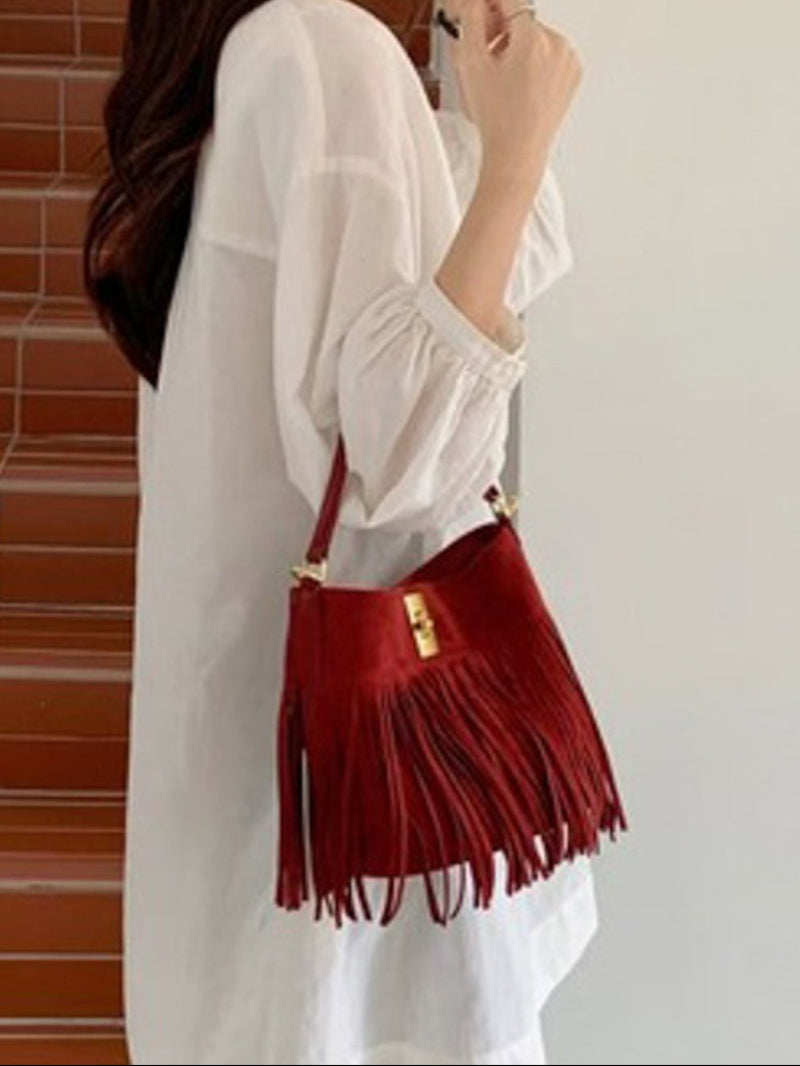 Bucket Fringe Bag - Red