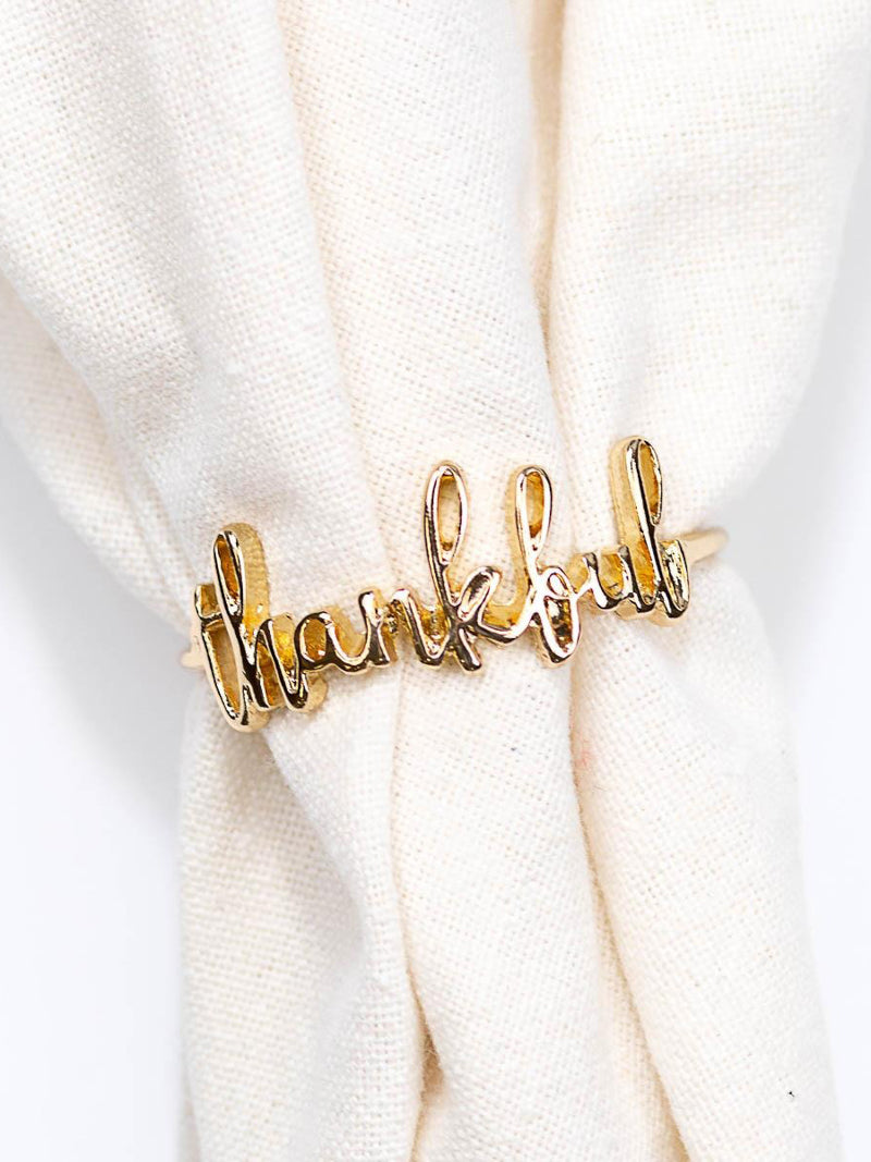 Golden glow meets gratitude — this playful 'Thankful' napkin ring adds a sparkling touch of warmth and charm to your table setting!