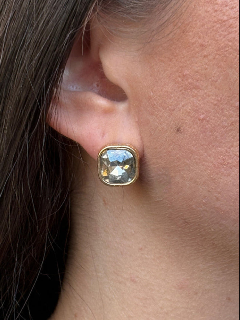 Elevate your style with this stunning gold square post earring, featuring a striking, smoky black crystal diamond. The sleek gold setting adds a modern, luxurious touch, while the black crystal catches the light with a subtle smokey shimmer, creating a brighter, eye-catching look.