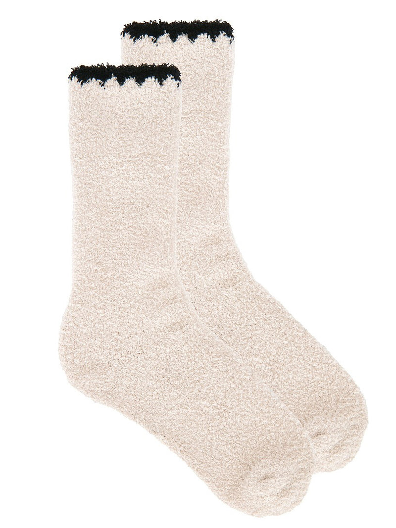 Slip into pure comfort with these ultra-soft CozyChic® crew socks. In a stone hue with black trim, they feature blanket-stitch rib detailing and a gently elastic stretch fit for all-day coziness.
