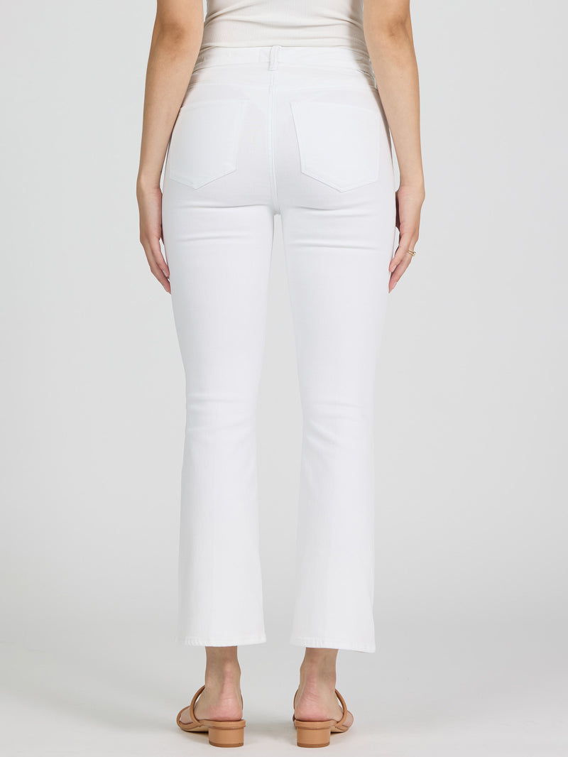 Clean, confident, and effortlessly cool — these white denim jeans are designed with a super high-rise fit, they cinch the waist and create that flattering, legs-for-days silhouette. The cropped length adds edge, while the subtle flare gives drama.