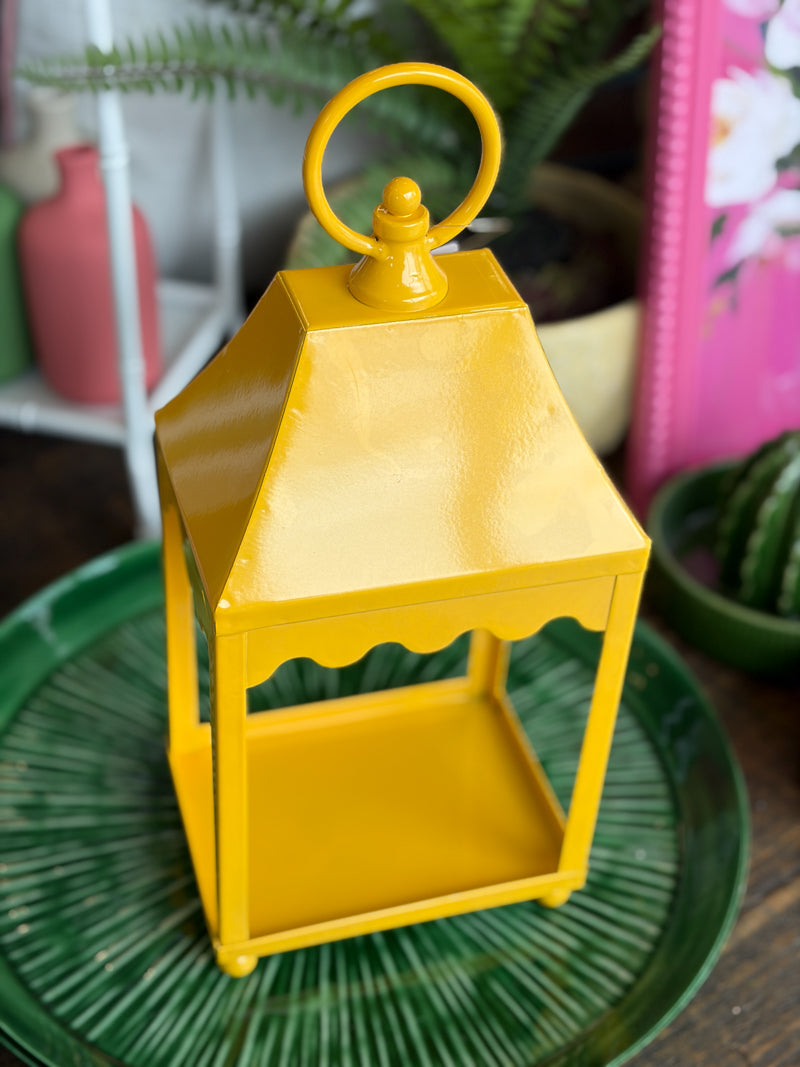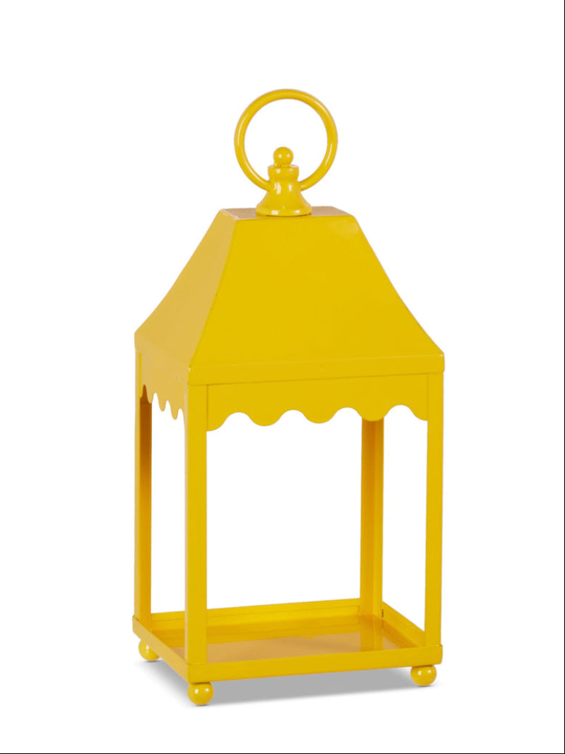 Crafted from sturdy iron and finished in a cheerful yellow hue, this 14-inch lantern adds a warm, welcoming touch to any room or outdoor setting. Its timeless silhouette pairs beautifully with candles, fairy lights, or seasonal florals.