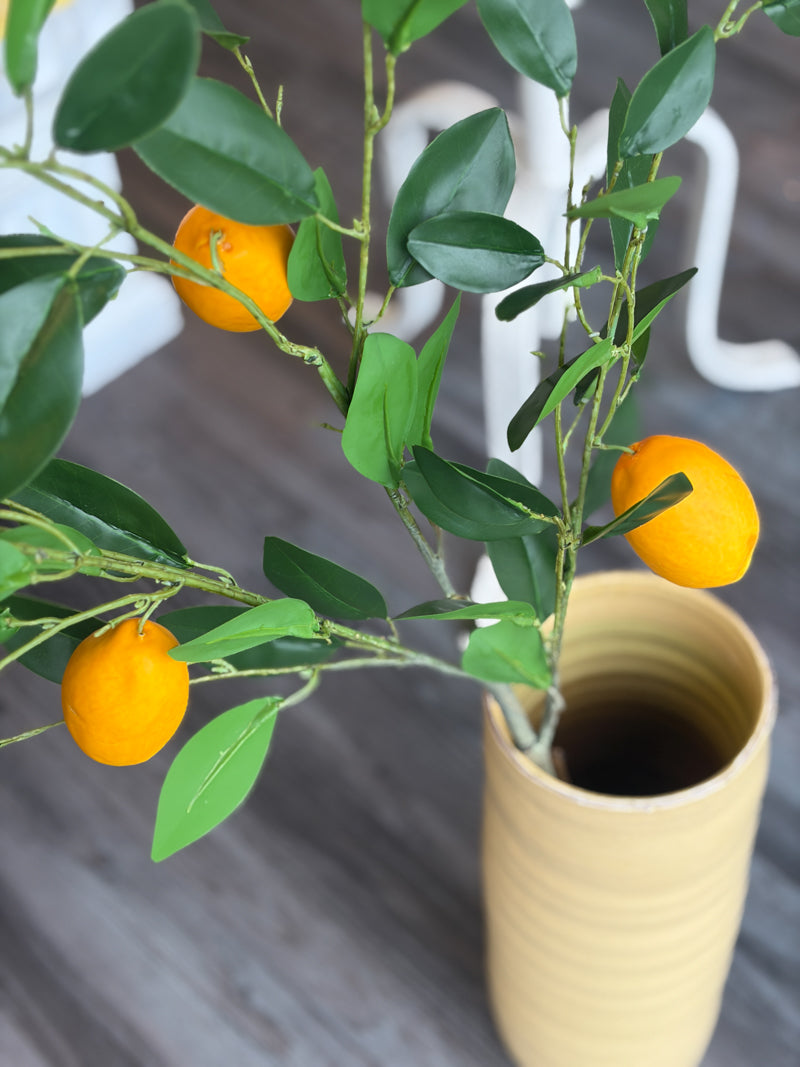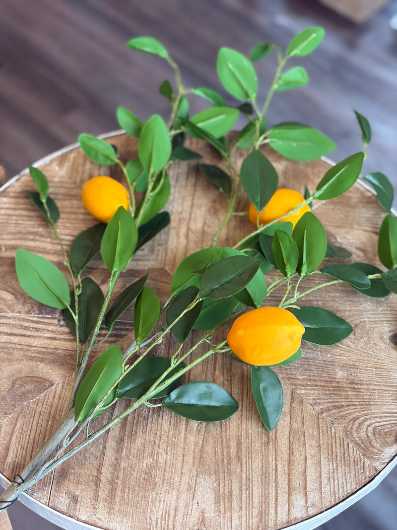 This 38 in faux lemon pick brings bright, cheerful color to your space with lifelike lemons and fresh green leaves that stay perfect year-round. Gorgeous on its own or bunched together for a full, lemon-tree look.