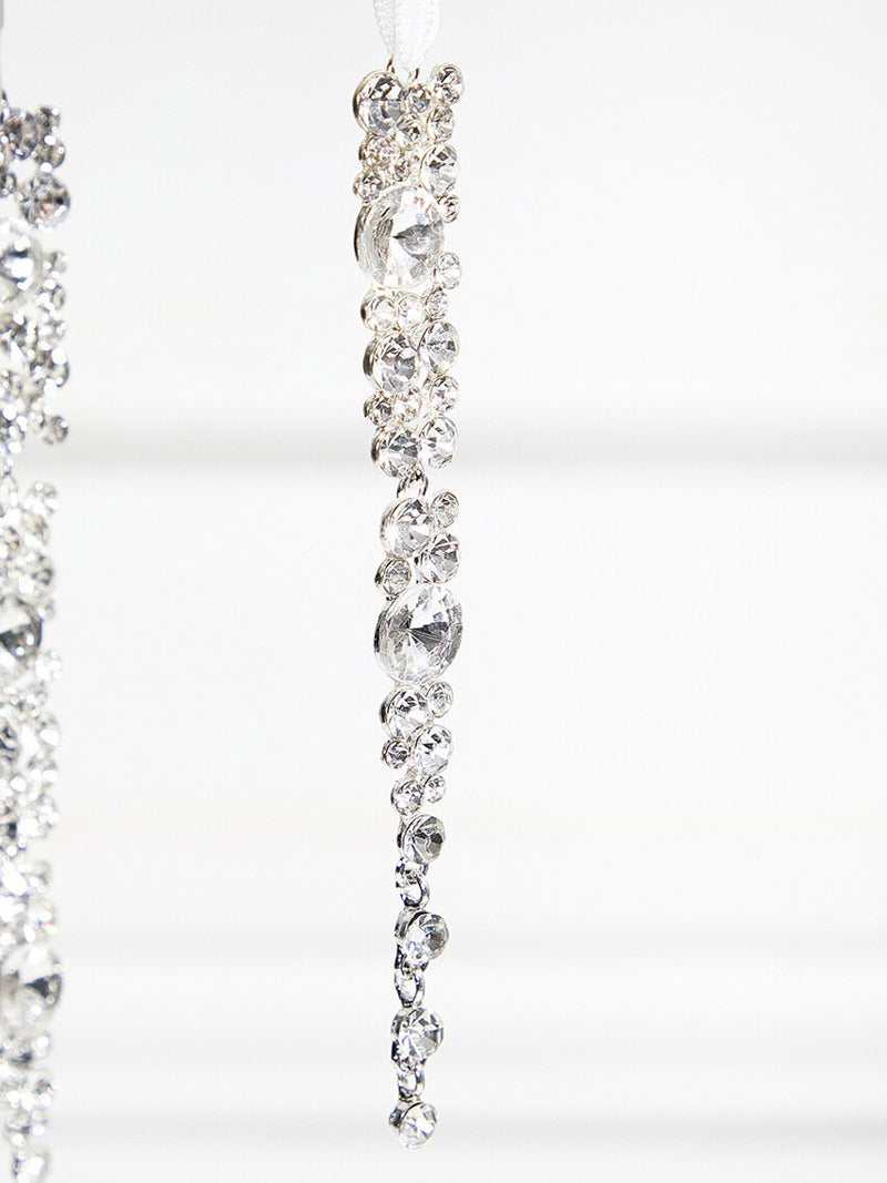 These glimmering jewel icicle ornaments will bring a touch of sparkle and sophistication to your holiday tree. Crafted in gleaming metal and rhinestones with jewel-like accents, each icicle shimmers with light and adds graceful dimension to your decor.