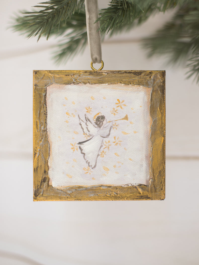 Celebrate the holy wonder of Christmas with these charming square wooden ornaments, each lovingly hand-painted in gold. Their warm, natural grain and delicate artistry invite a sense of peace and reverence into any space.