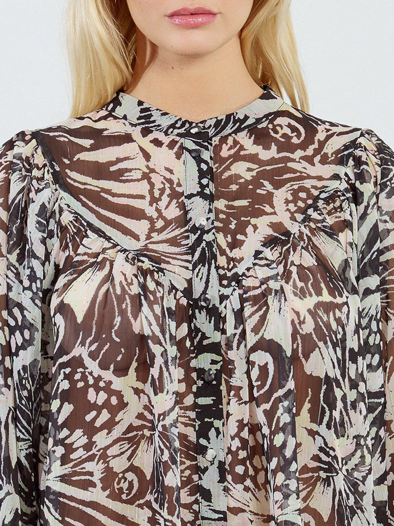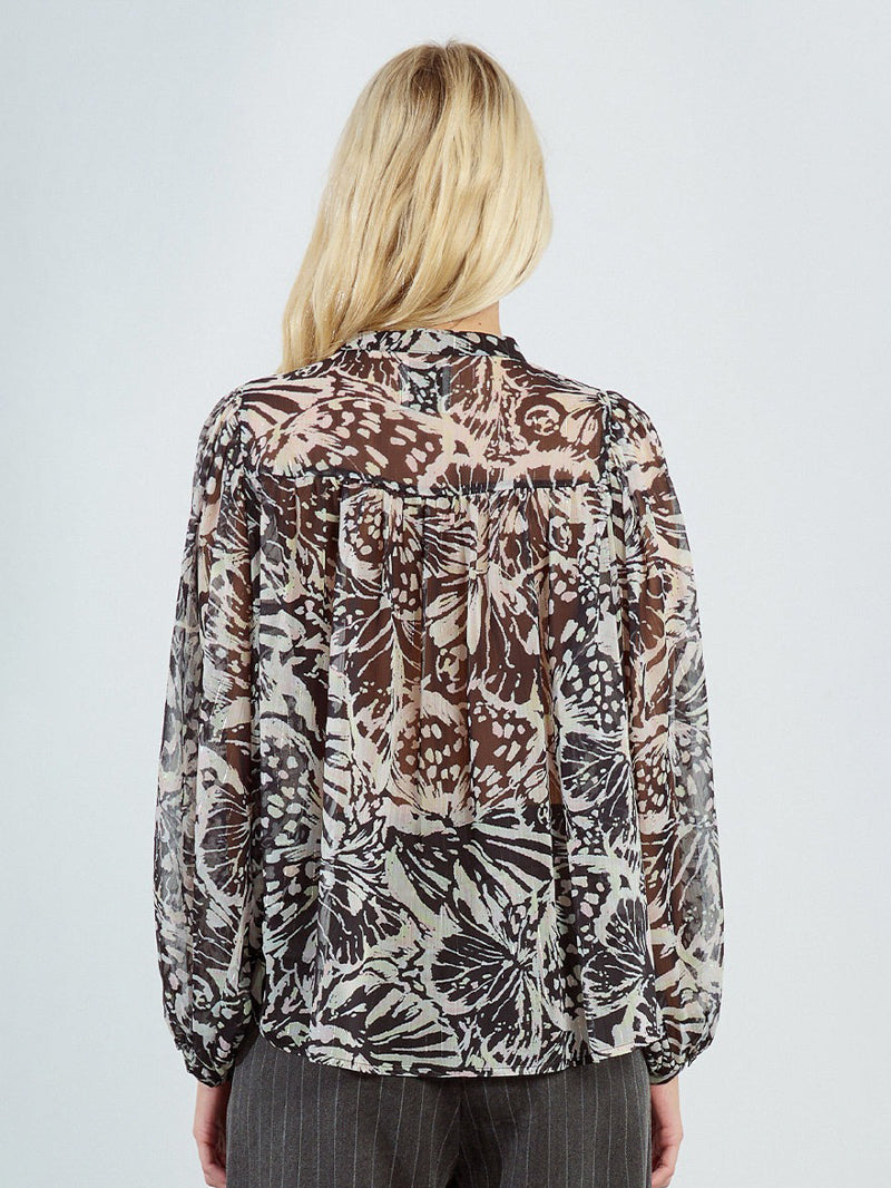 Add a touch of drama to your day with this black and white sheer voile button-up—complete with puffed sleeves, pleated bust, and crisp office collar. It’s classic with a bold twist!