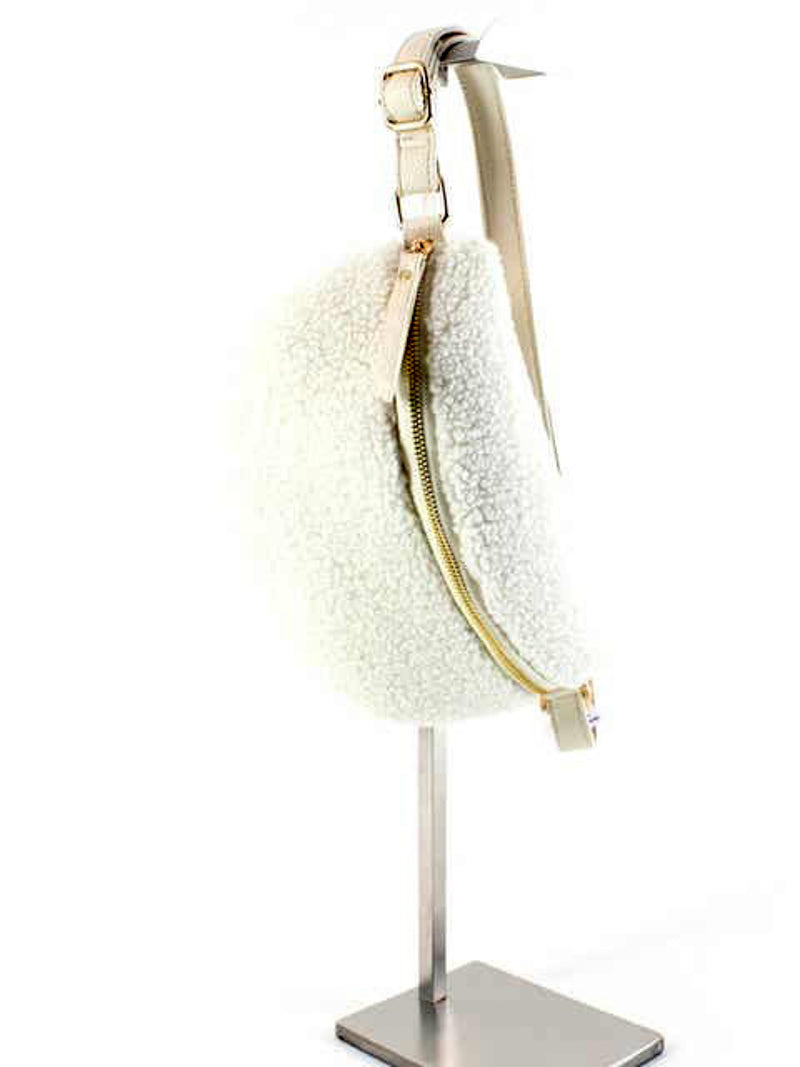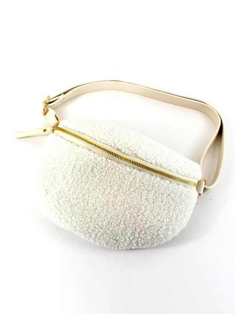 This small cream white sherpa sling bag blends soft texture with minimalist design. Crafted from plush sherpa with a sleek gold zip closure and adjustable faux leather crossbody strap, it’s equal parts cozy and refined — your new go-to purse for everyday wear.