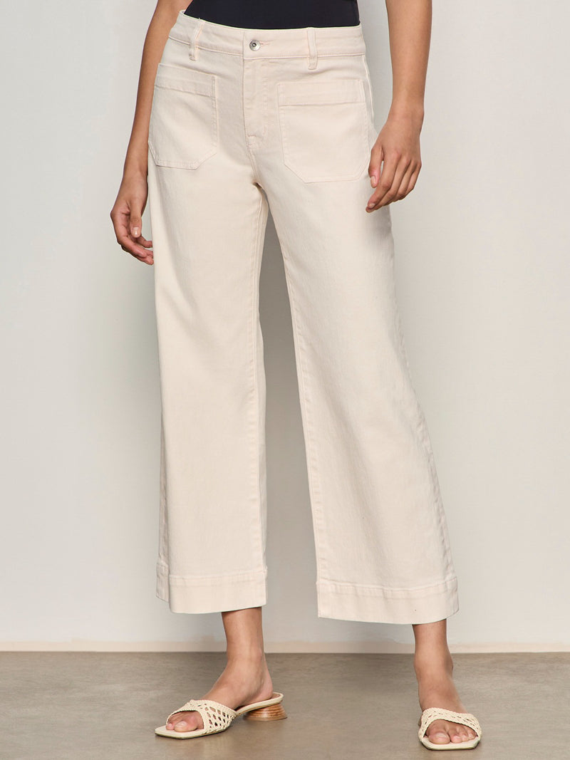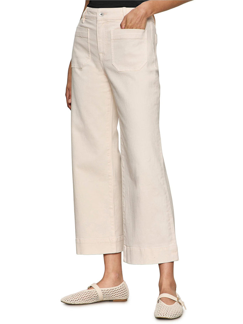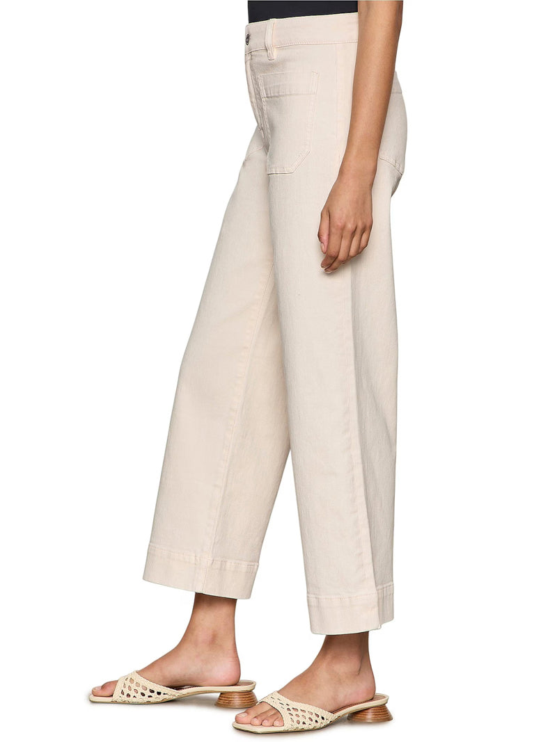 Get ready to rock some stylish comfort with these Marine style denim trousers in a pale, pink-tinted cream color. This trendy silhouette features a standard rise, cropped length, and wide-leg cut for a flattering, versatile look.